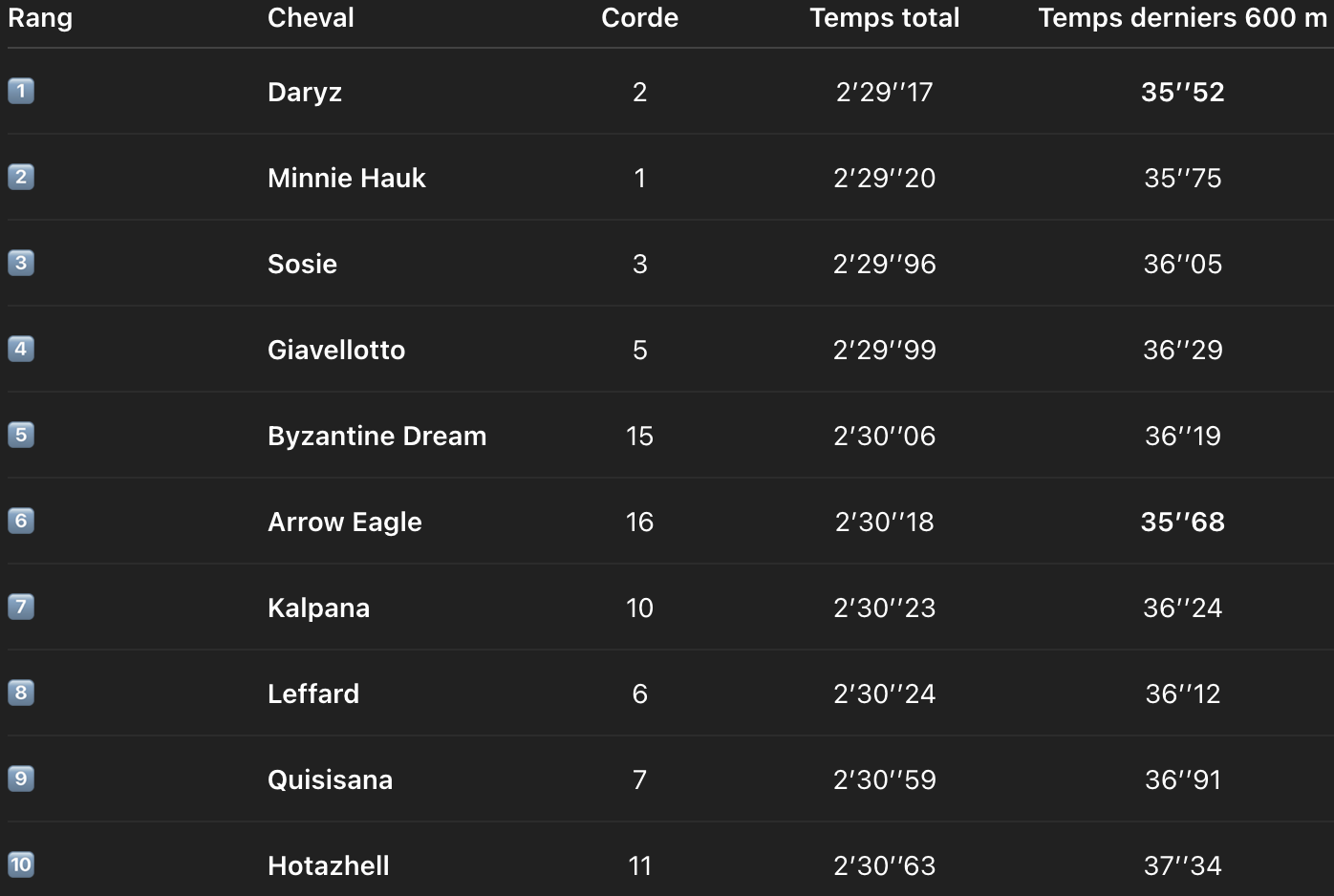 Arrow Eagle even recorded the third-fastest final 600m (35.58s) after being over 21 meters off the leader entering the home straight šļø.
