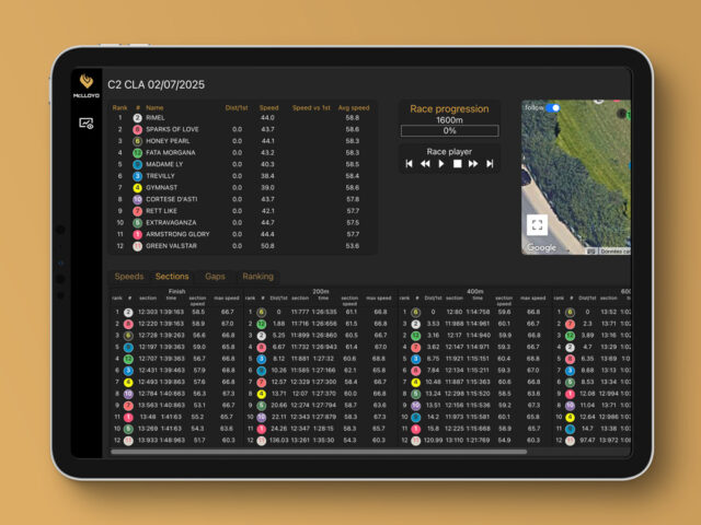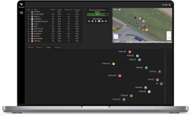 Thanks to our 10 Hz data transmission and high-precision GPS, you can know the exact gap between every horse at any key point of the race!